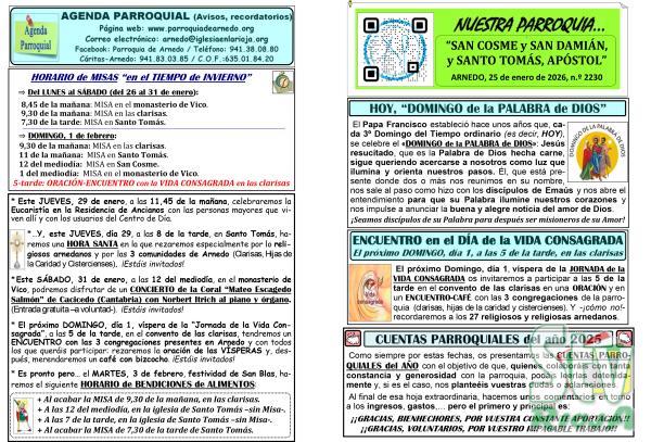 ARNEDO. La hoja parroquial de Arnedo ‘Nuestras Parroquias’ la podrán recoger tambien en la página de Sintonía Televisión