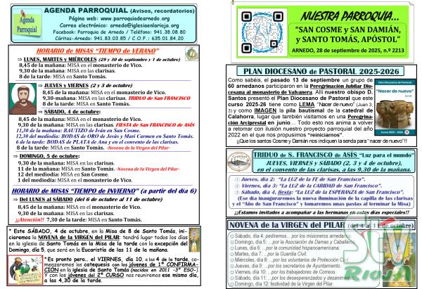 ARNEDO. La hoja parroquial de Arnedo ‘Nuestras Parroquias’ la podrán recoger tambien en la página de Sintonía Televisión