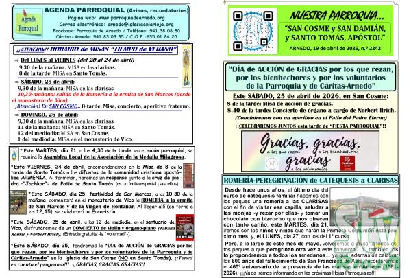 ARNEDO. La hoja parroquial de Arnedo ‘Nuestras Parroquias’ la podrán recoger tambien en la página de Sintonía Televisión