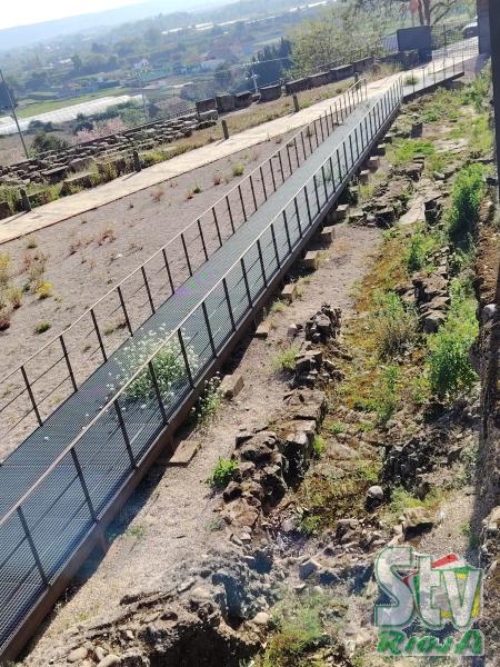 1. La zona de las termas romanas presenta un desprendimiento reciente, el yacimiento se encuentra plagado de malas hierbas y basura que permanece durante semanas.